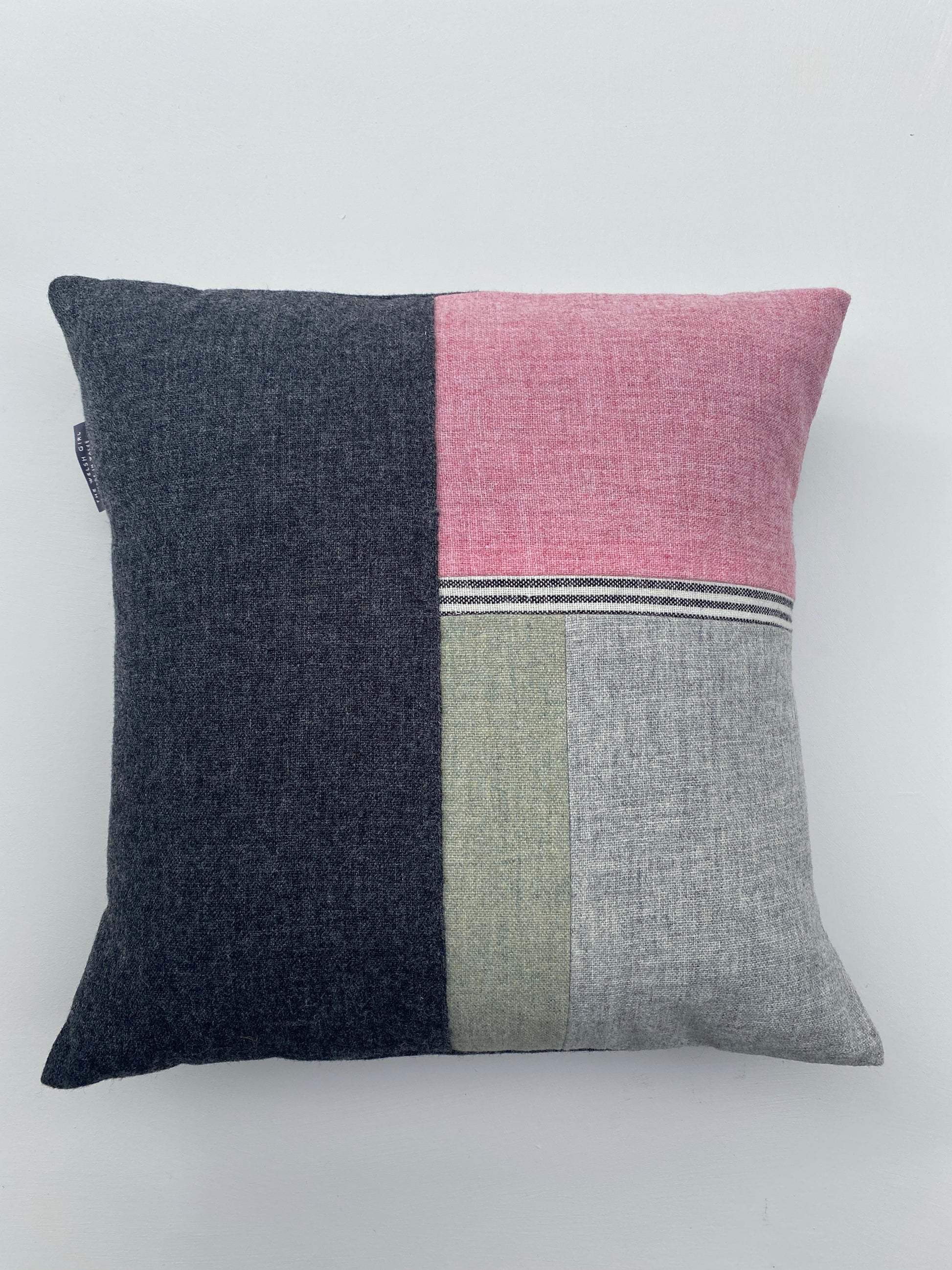 Made from traditionally woven Welsh flannel in The Welsh Girl's own colourways. 100% wool. Generous overlap envelope back in contrasting single colour flannel.