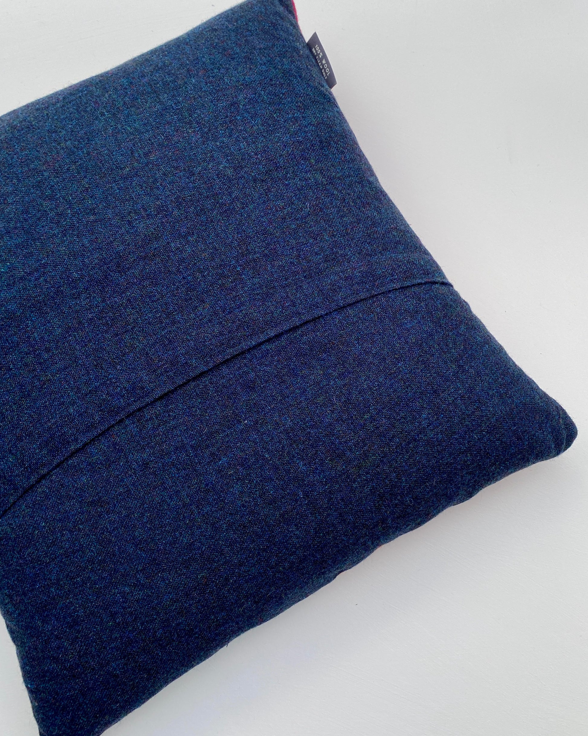 Made from traditionally woven Welsh flannel, combining the heritage textiles with The Welsh Girl's own colourways. 100% wool. Generous overlap envelope back in contrasting single colour flannel.