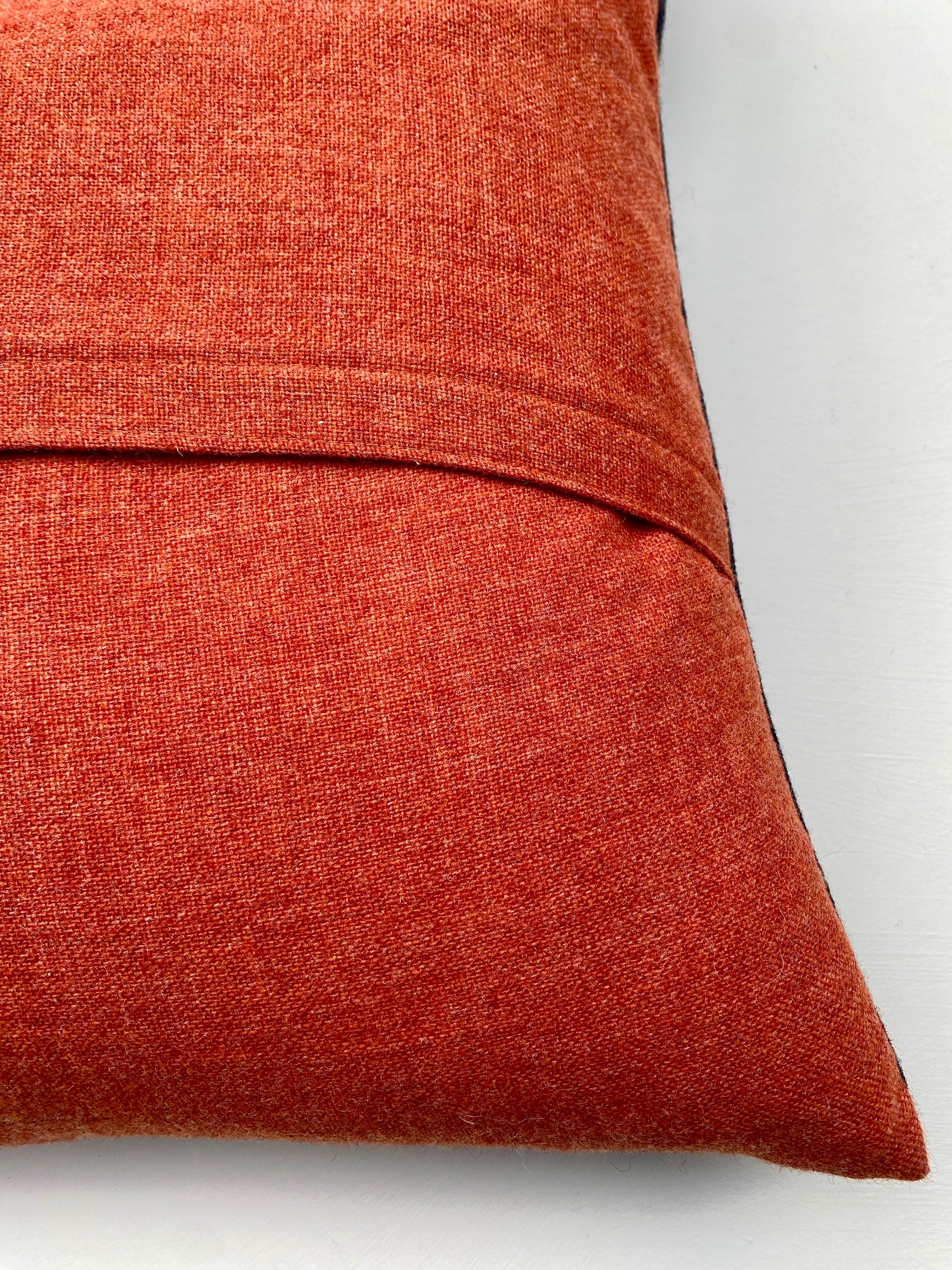 Made from traditionally woven Welsh flannel, combining the heritage textiles with The Welsh Girl's own colourways. 100% wool. Generous overlap envelope back in contrasting single colour flannel.