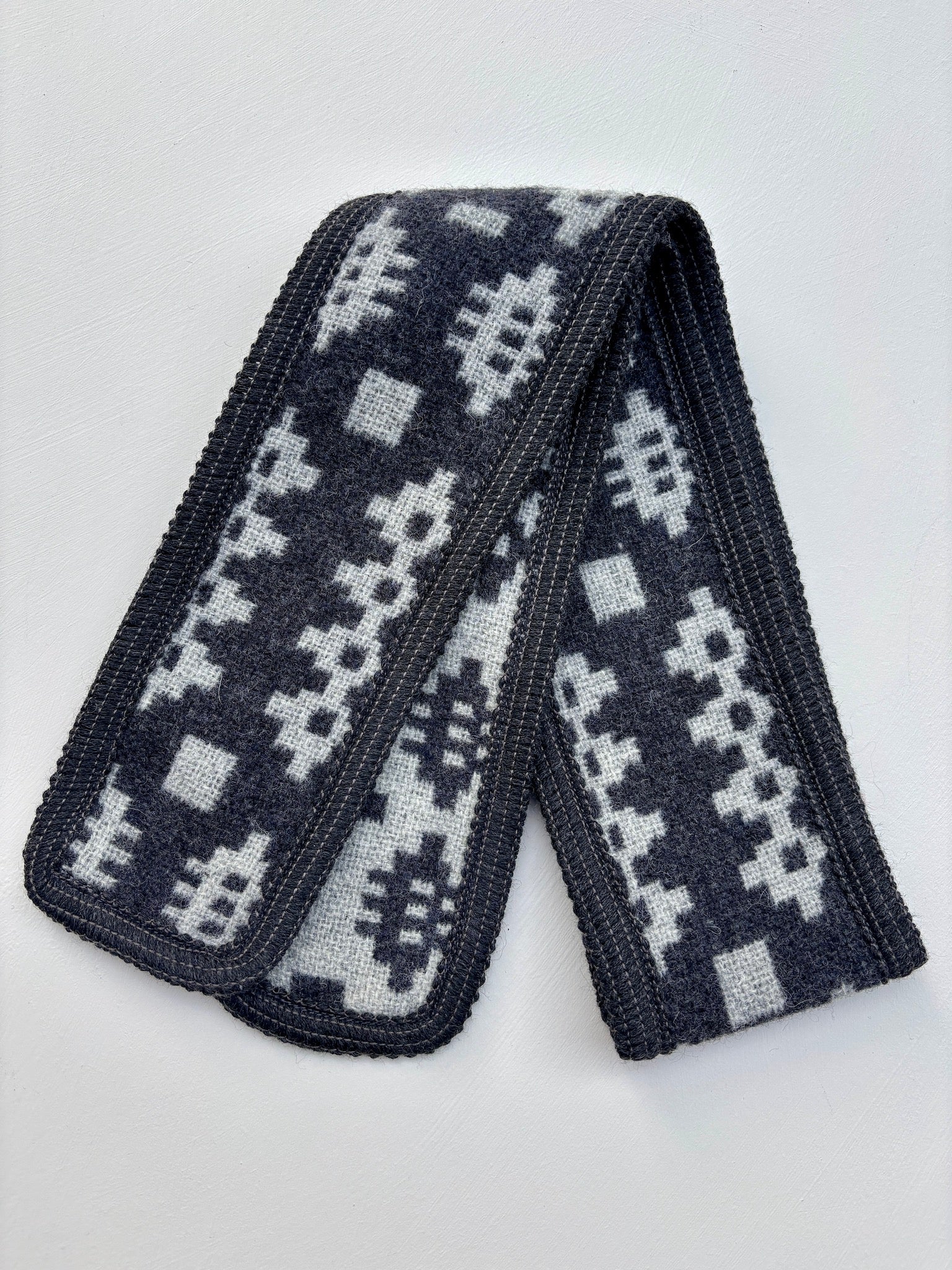 Only a limited number of these warm, timeless, versatile tie neck scarves have been made from the last of the Welsh tapestry cloth woven at Melin Teifi.