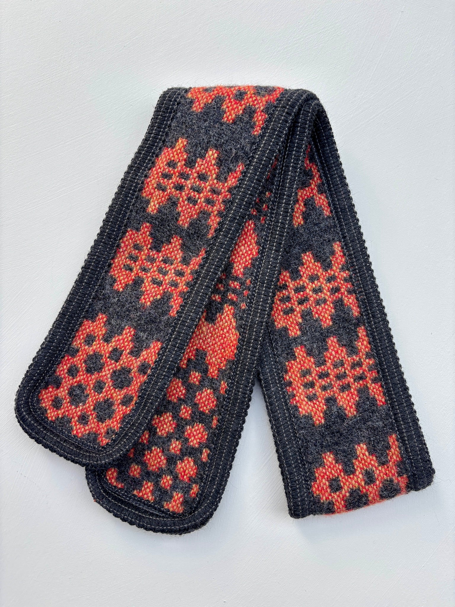 Only a limited number of these warm, timeless, versatile tie neck scarves have been made from the last of the Welsh tapestry cloth woven at Melin Teifi.