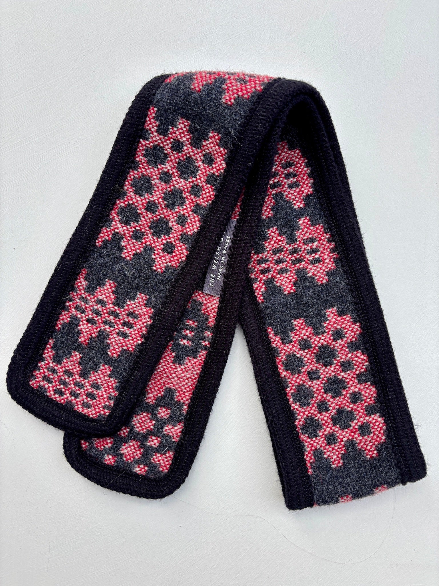 Only a limited number of these warm, timeless, versatile tie neck scarves have been made from the last of the Welsh tapestry cloth woven at Melin Teifi.
