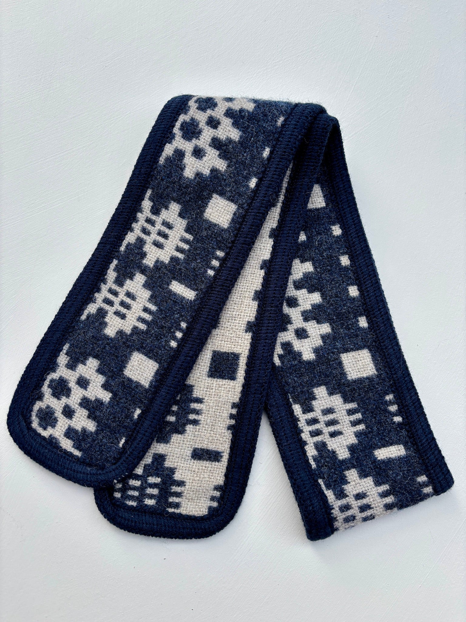 Only a limited number of these warm, timeless, versatile tie neck scarves have been made from the last of the Welsh tapestry cloth woven at Melin Teifi.