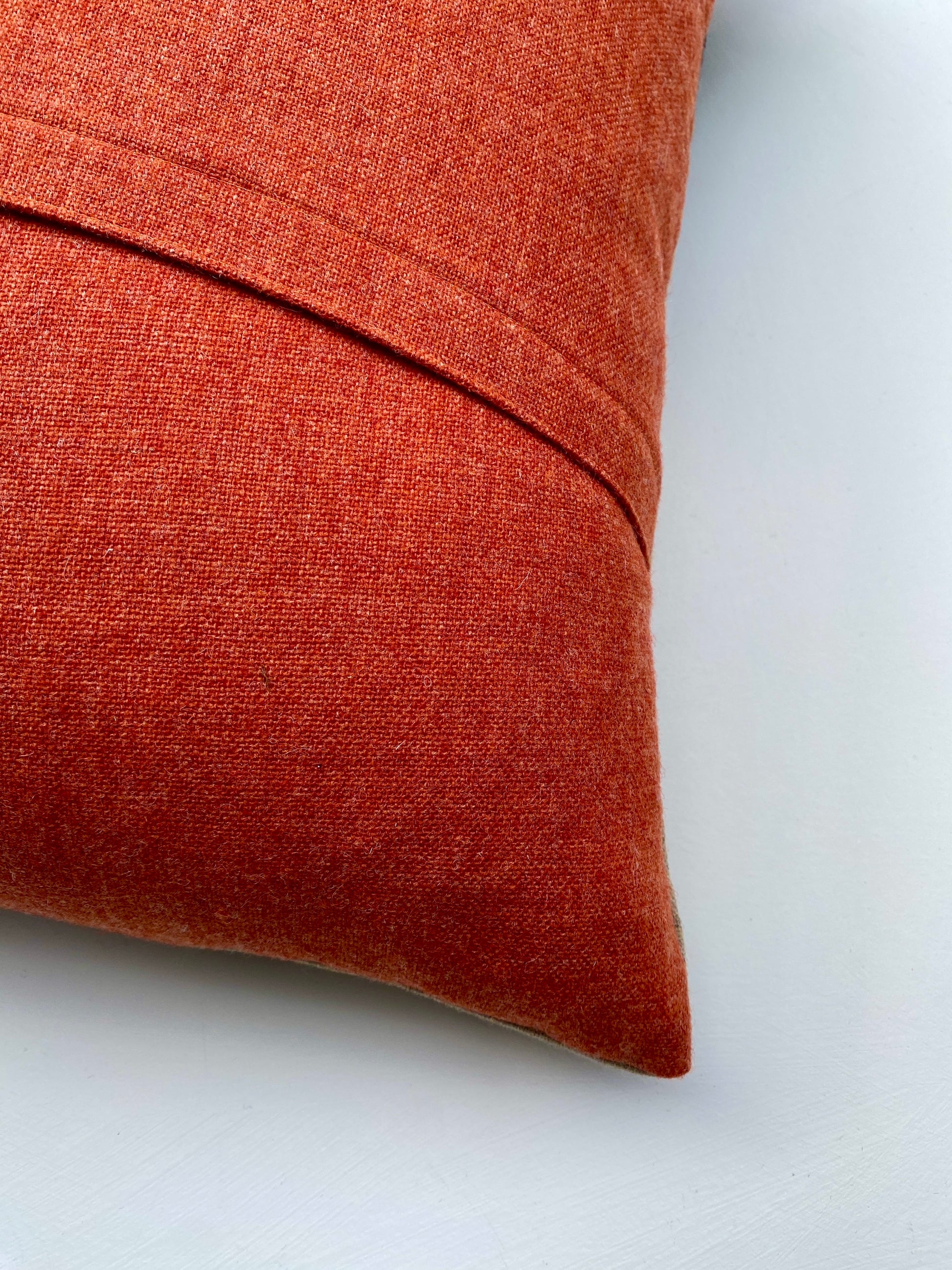 Made from traditionally woven Welsh flannel, combining the heritage textiles with The Welsh Girl's own colourways. 100% wool. Generous overlap envelope back in contrasting single colour flannel.