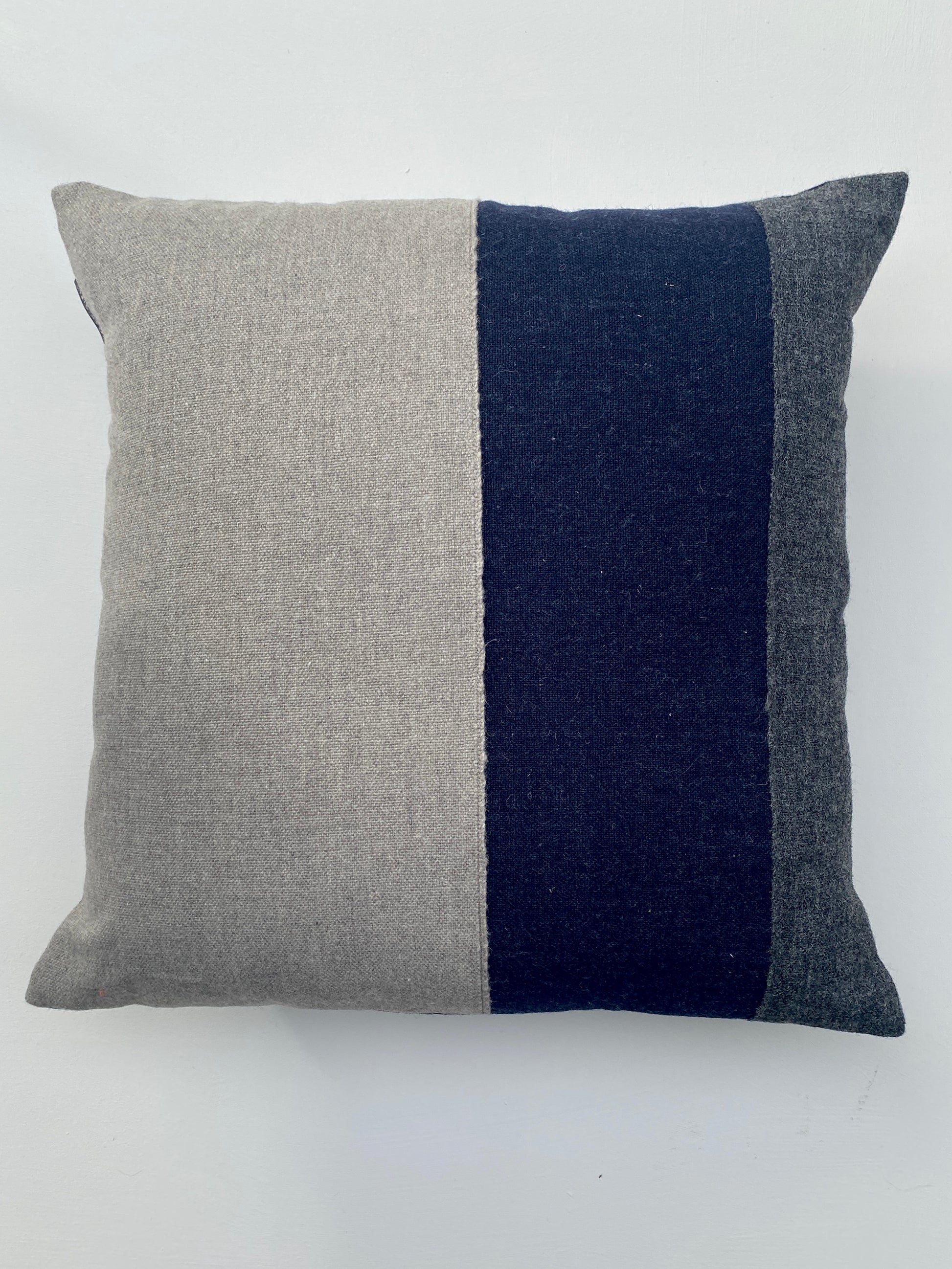 Made from traditionally woven Welsh flannel in The Welsh Girl's own colourways. 100% wool. Generous overlap envelope back in indigo flannel as featured.
