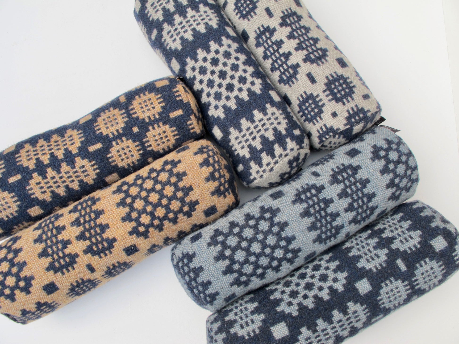 This item is unique to TWG. Woven on traditional looms and handmade in Wales. Only a small number of bolsters are made from each colour way. No two colours are ever repeated.