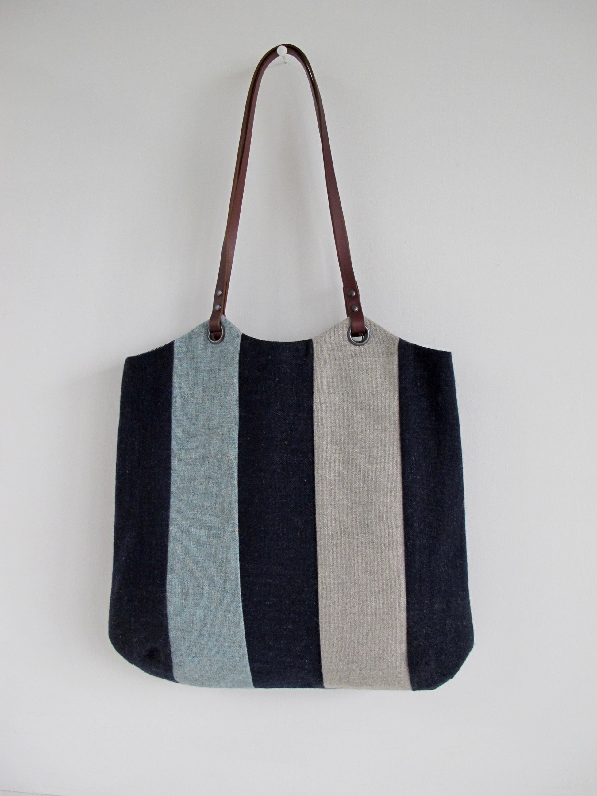 Blockwork Tote Bag - indigo, topaz & stone stripe