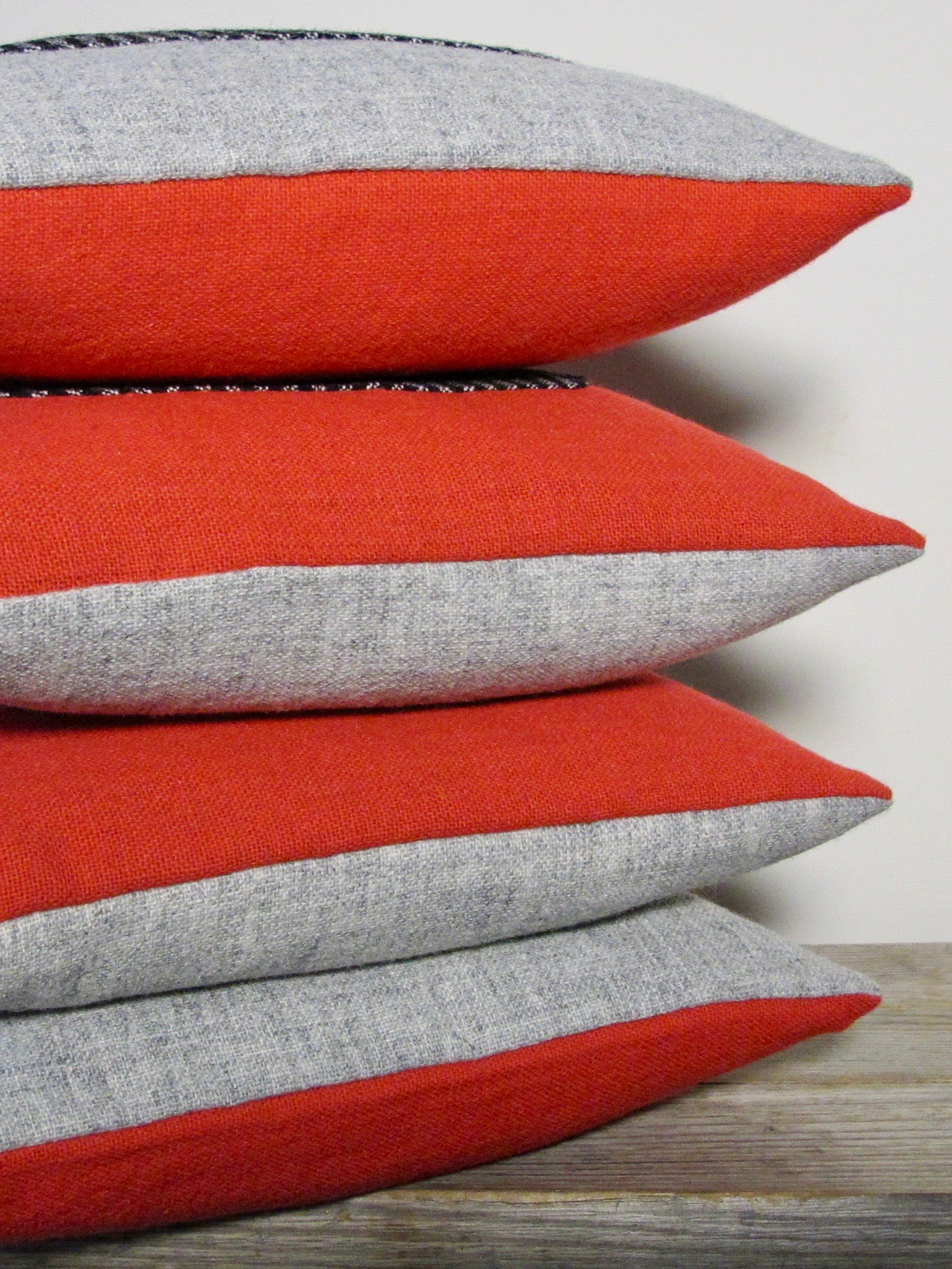 Handmade from traditionally woven Welsh flannel in red or grey with a grey and charcoal hat. 100% wool. Overlap envelope back in contrasting single colour flannel. A great gift from Wales for the self or another.